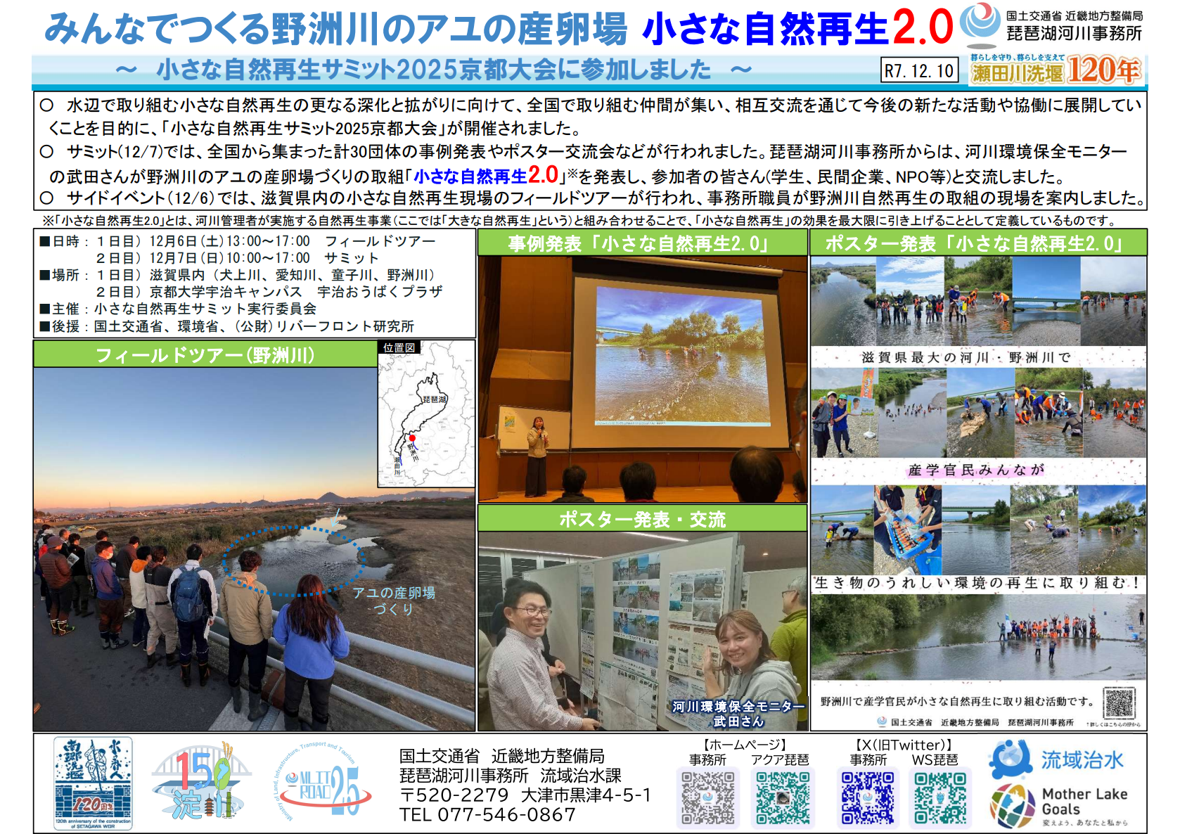 【琵琶湖河川事務所】みんなでつくる野洲川のアユの産卵場 小さな自然再生2.0~小さな自然再生サミット2025京都大会に参加しました~