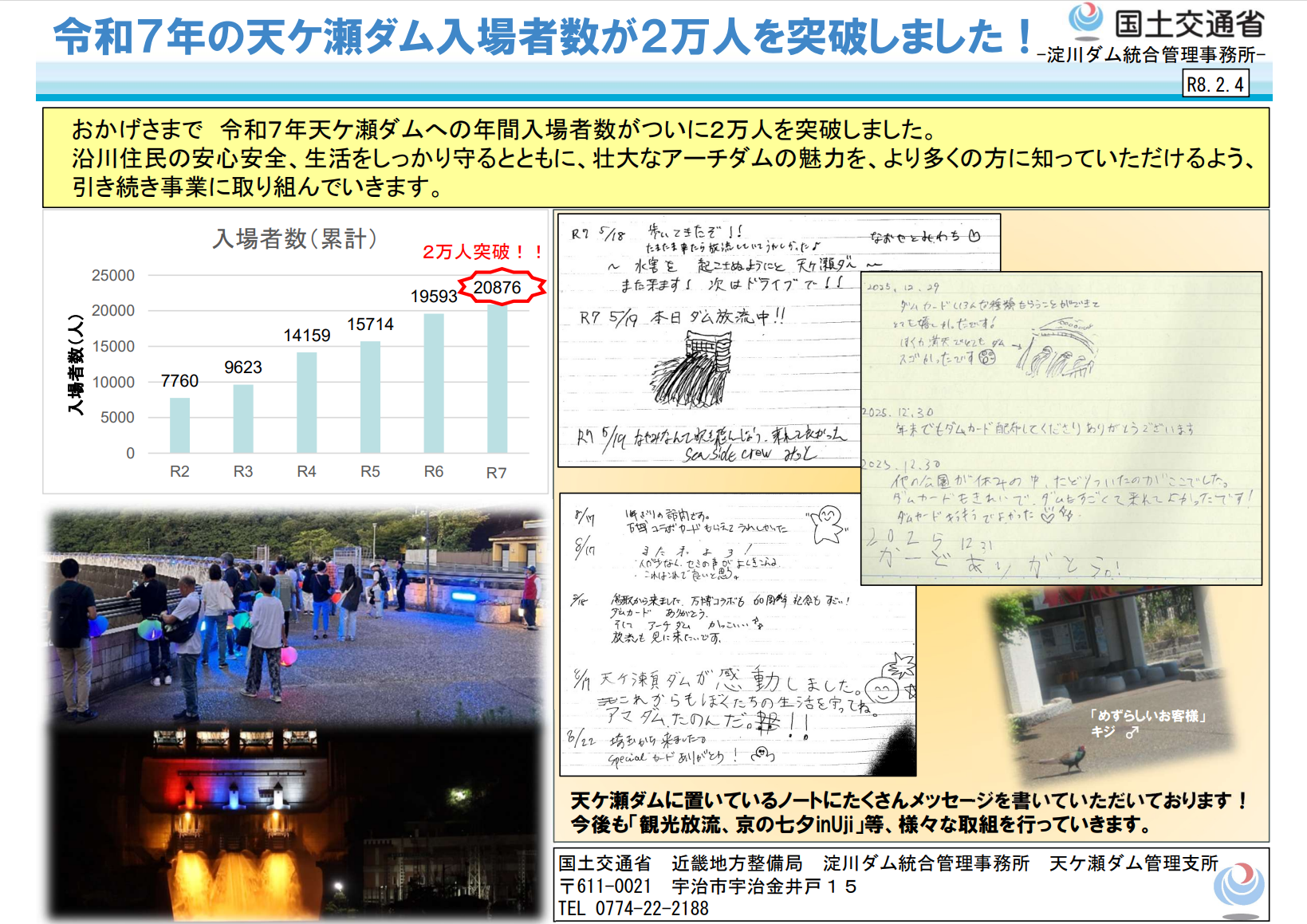 【淀川ダム統合管理事務所】令和7年の天ケ瀬ダム入場者数が2万人を突破しました!