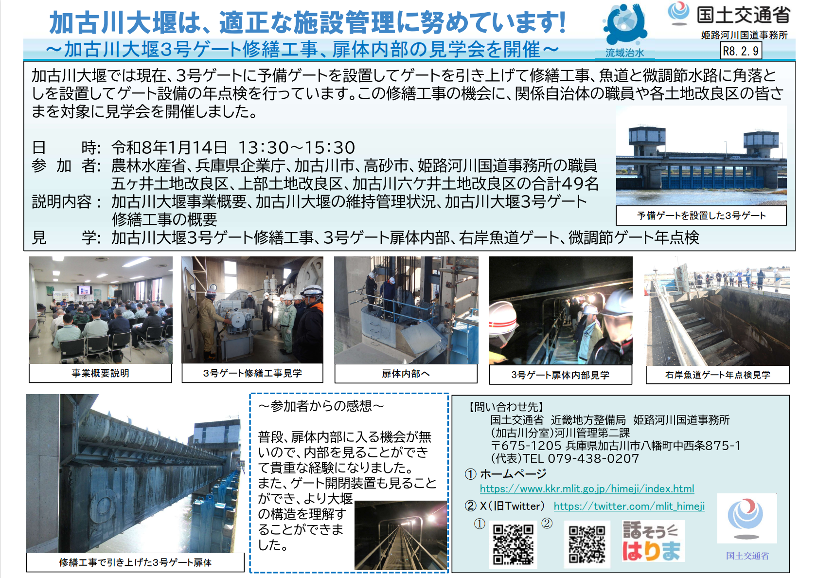 【姫路河川国道事務所】加古川大堰3号ゲート修繕工事と扉体内部の見学会を開催しました!