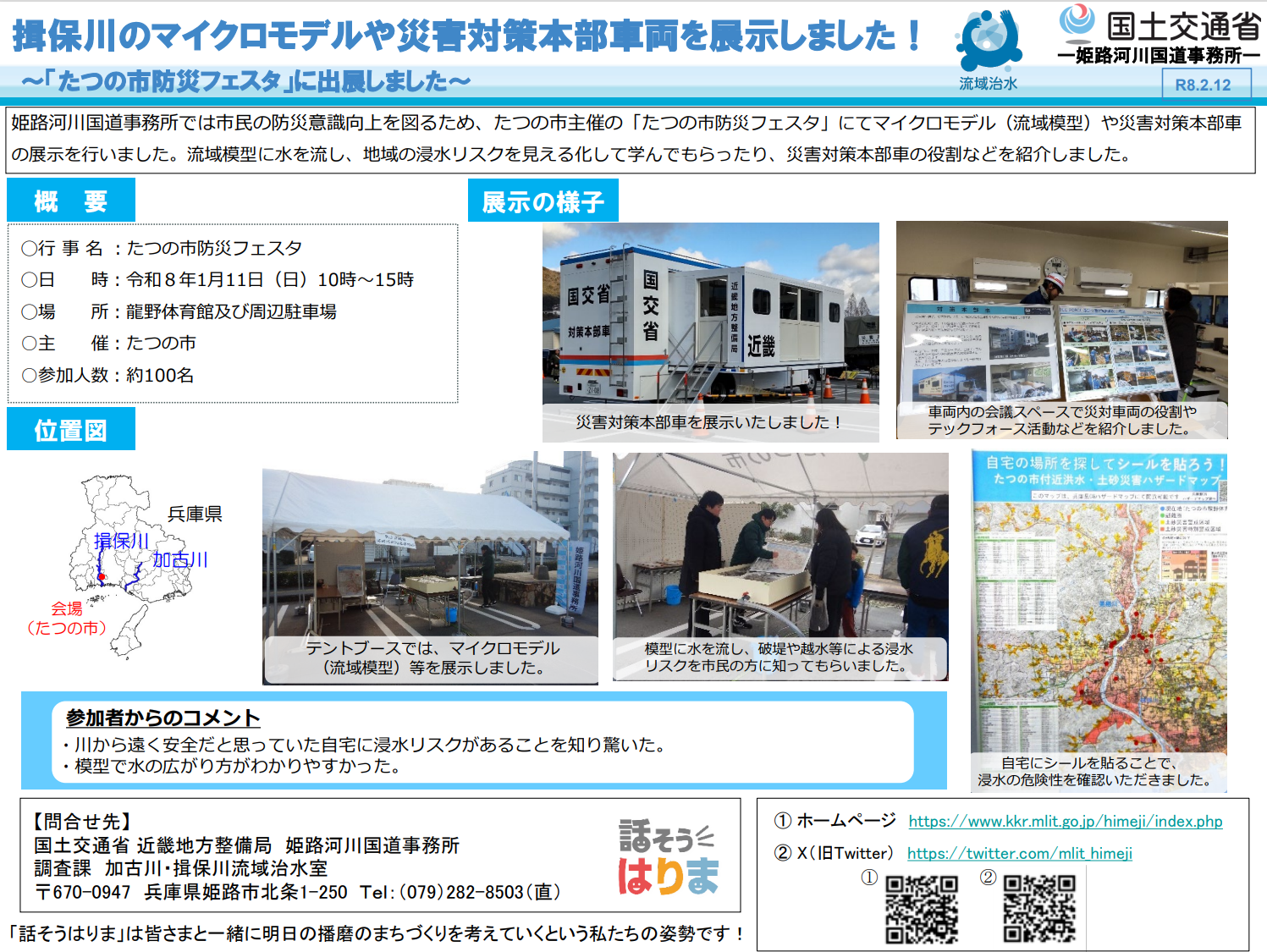 【姫路河川国道事務所】揖保川のマイクロモデルや災害対策本部車両を展示しました!