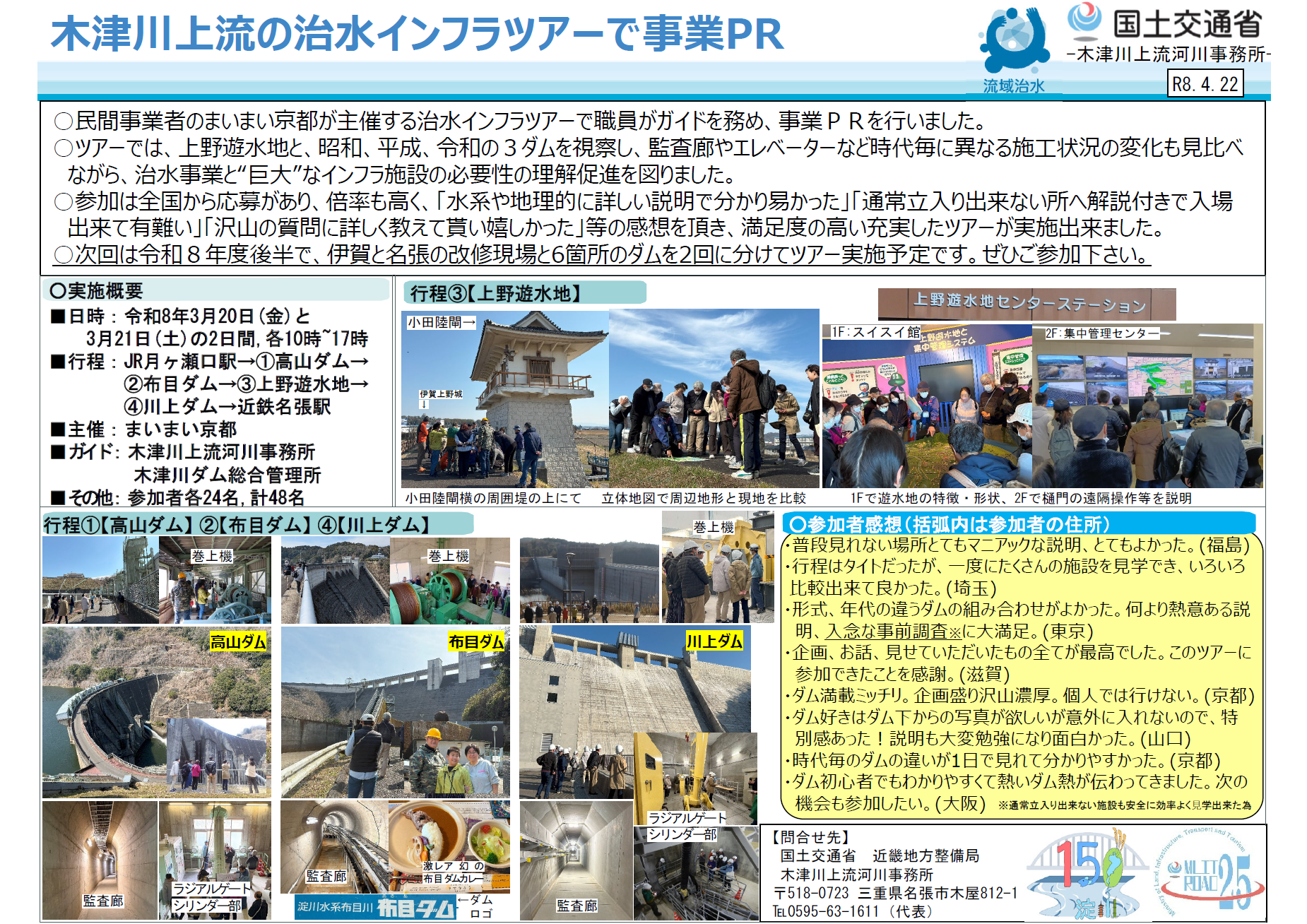 【木津川上流河川事務所】木津川上流の治水インフラツアーで事業PR