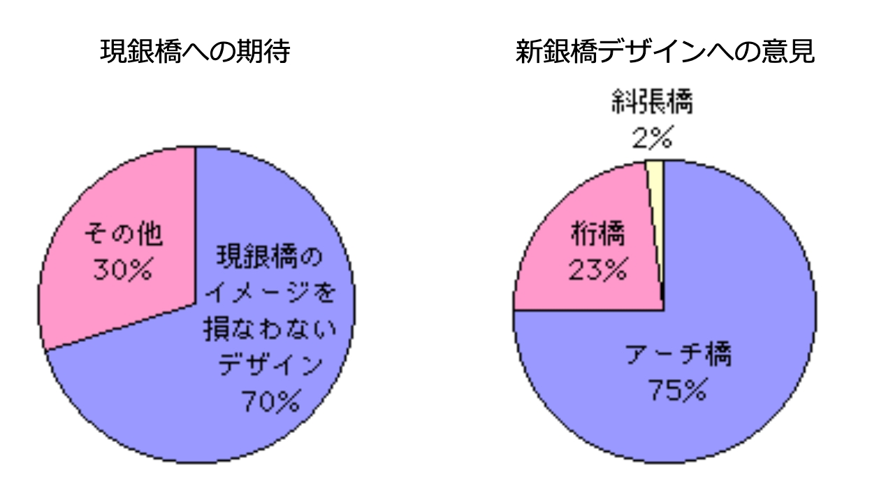 以上の議論と、市民の意見として「アーチ橋」への支持が全体の3/4を占めたことをふまえ、新銀橋のタイプは、現銀橋と同じく「アーチ橋」となりました。