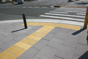 しょう害のある人が、安心して道を歩くことができるようにするために、道路にはいろいろなくふうがしてあります。 しかくしょう害者が、足でふれたり、耳で聞いたりして、安全に歩けるくふうです。ふれるくふうでは、ゆうどう用ブロック、ゆうどう用タイル、点字表示板、点字案内板があります。耳で聞くくふうでは、ゆうどう鈴や音声ひょうじがあります。