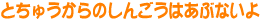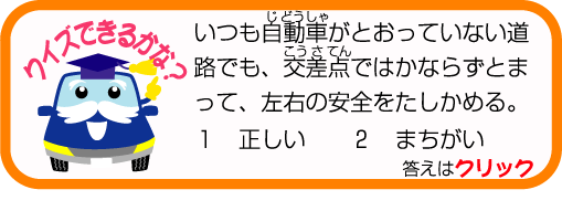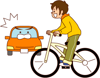 ![]() 自転車にのって道路をおうだんするときは、必ずとまって安全をたしかめましょう。 |