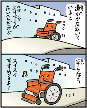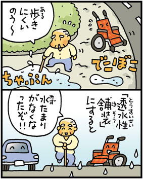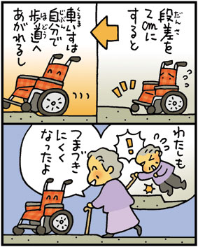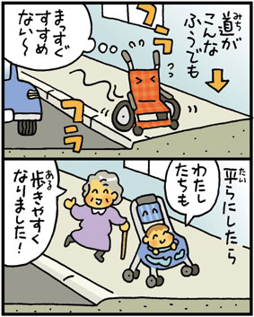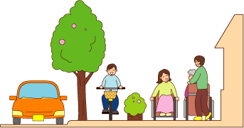 人が自由に活動するときにしょう害になるものを「バリアー」といい、そのしょう害を取りのぞくことを「バリアフリー」とよびます。道路の「バリアフリー」とは道にあるしょう害をなくして、だれもが安心して歩けるように道路をつくることです。
