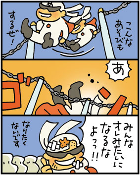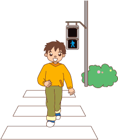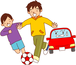 遊びや友だちとの話にむちゅうになって、交差点(こうさてん)で左右をたしかめることをわすれたり、ほそい道から飛び出してじこにあう子どもがたくさんいます。いつでもルールを守ることを忘れないようにしましょう。