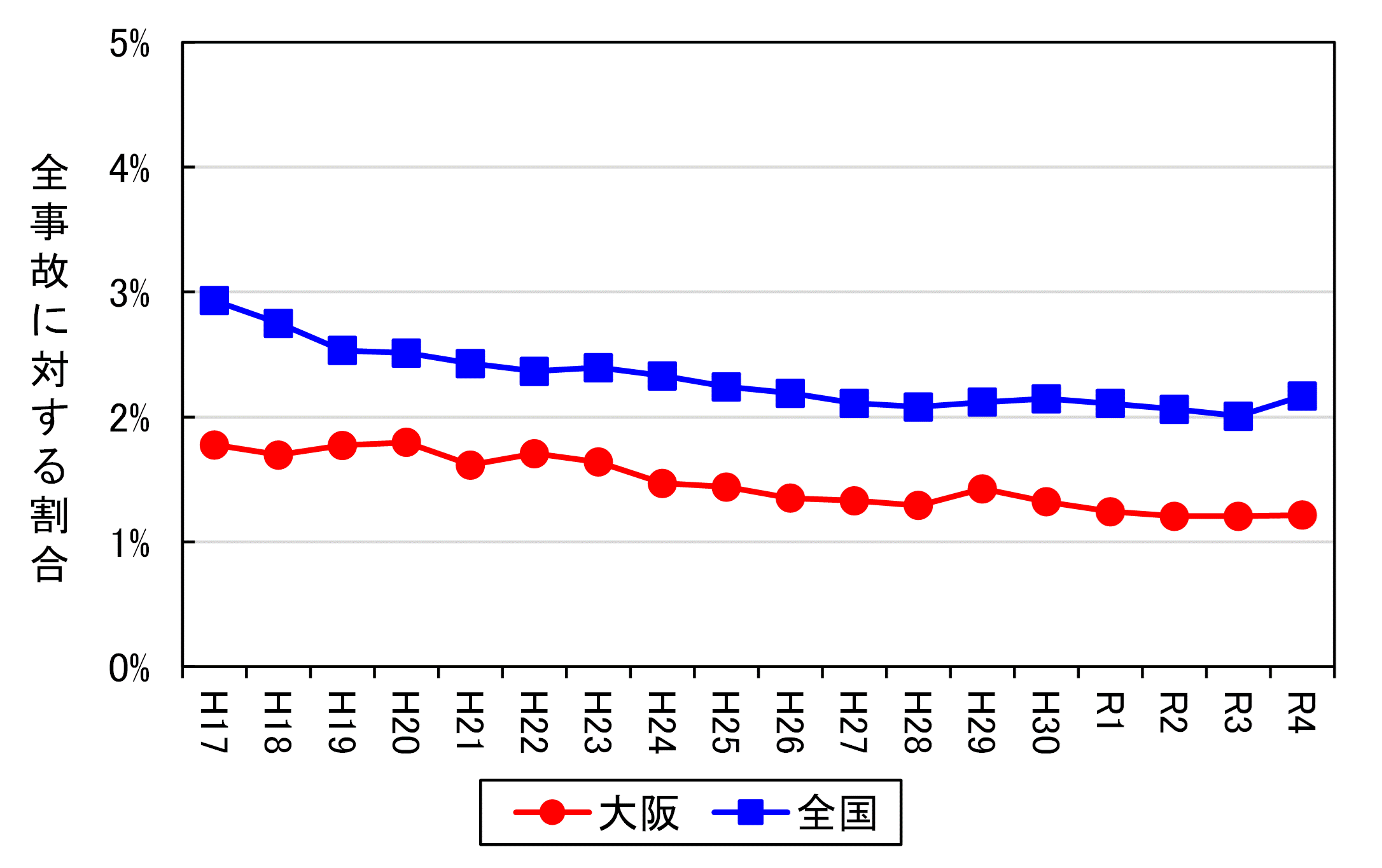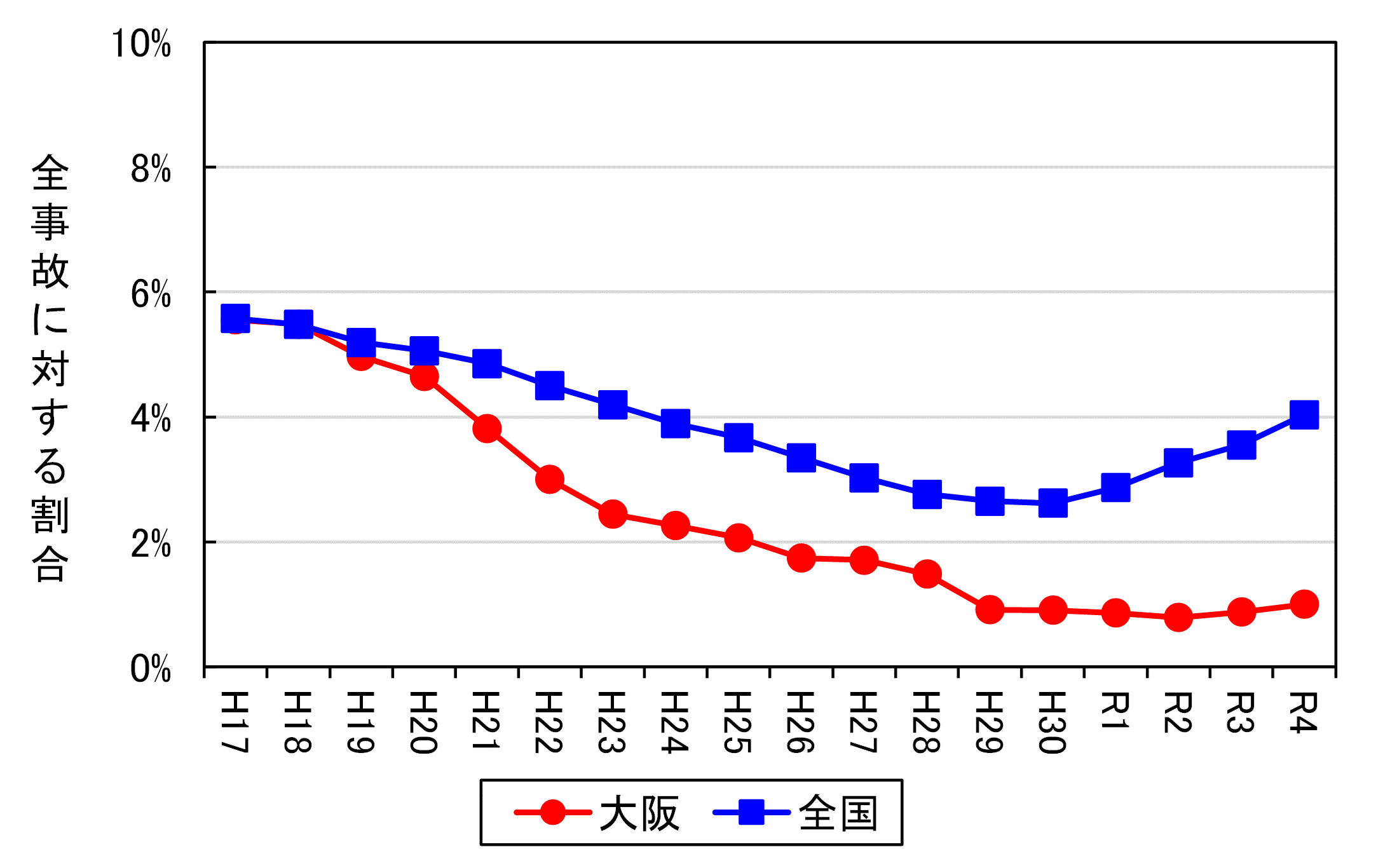 ここでは、大阪府下の交通事故の傾向を紹介します。
