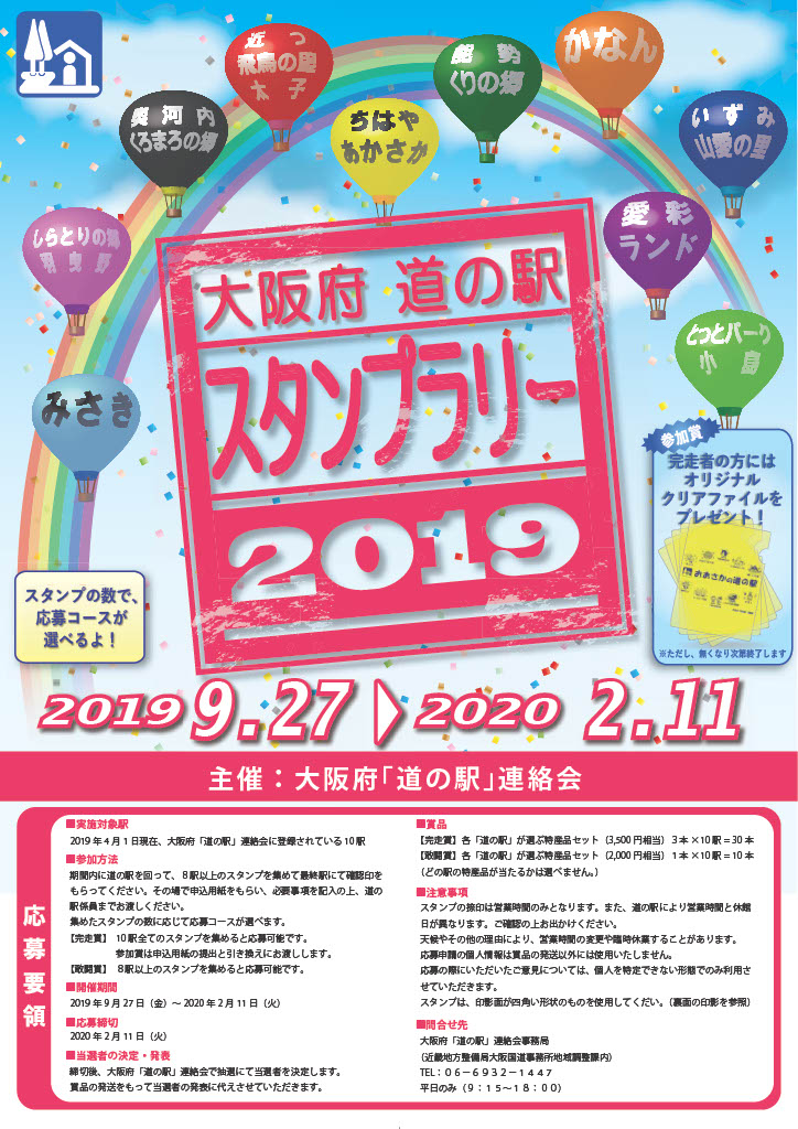 大阪府「道の駅」スタンプラリー 2019は終了しました。