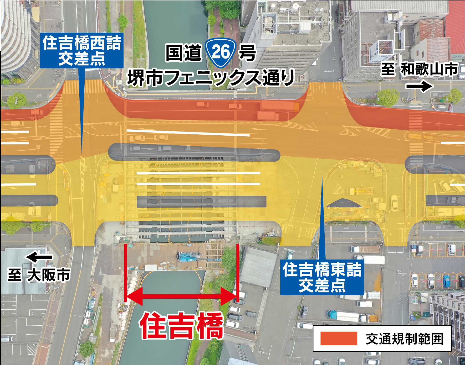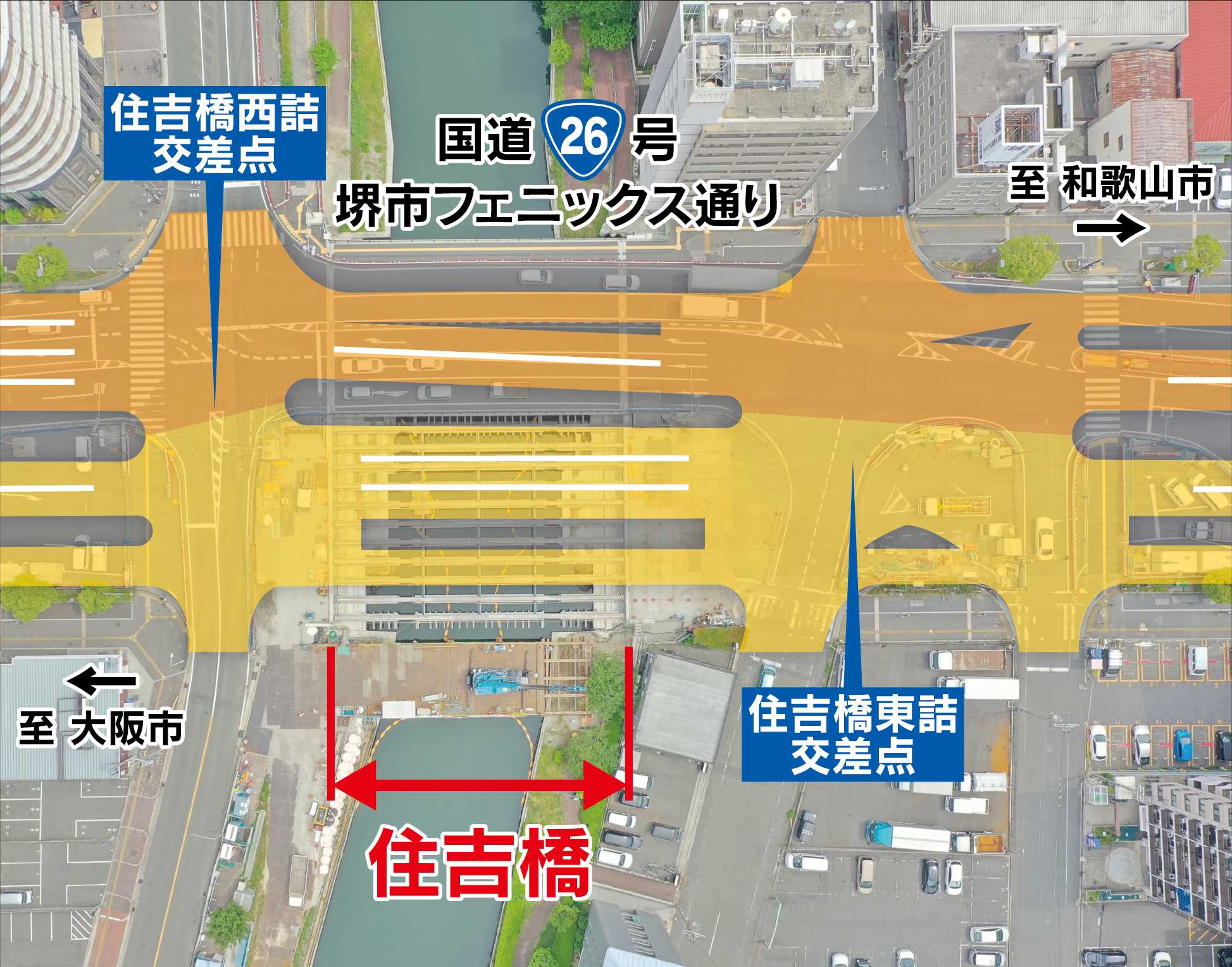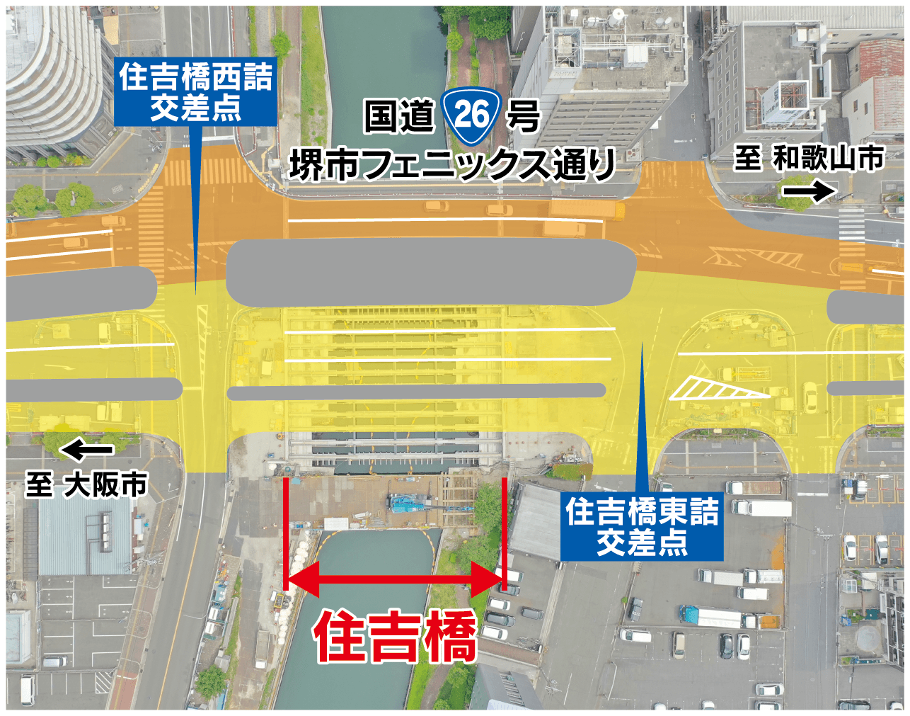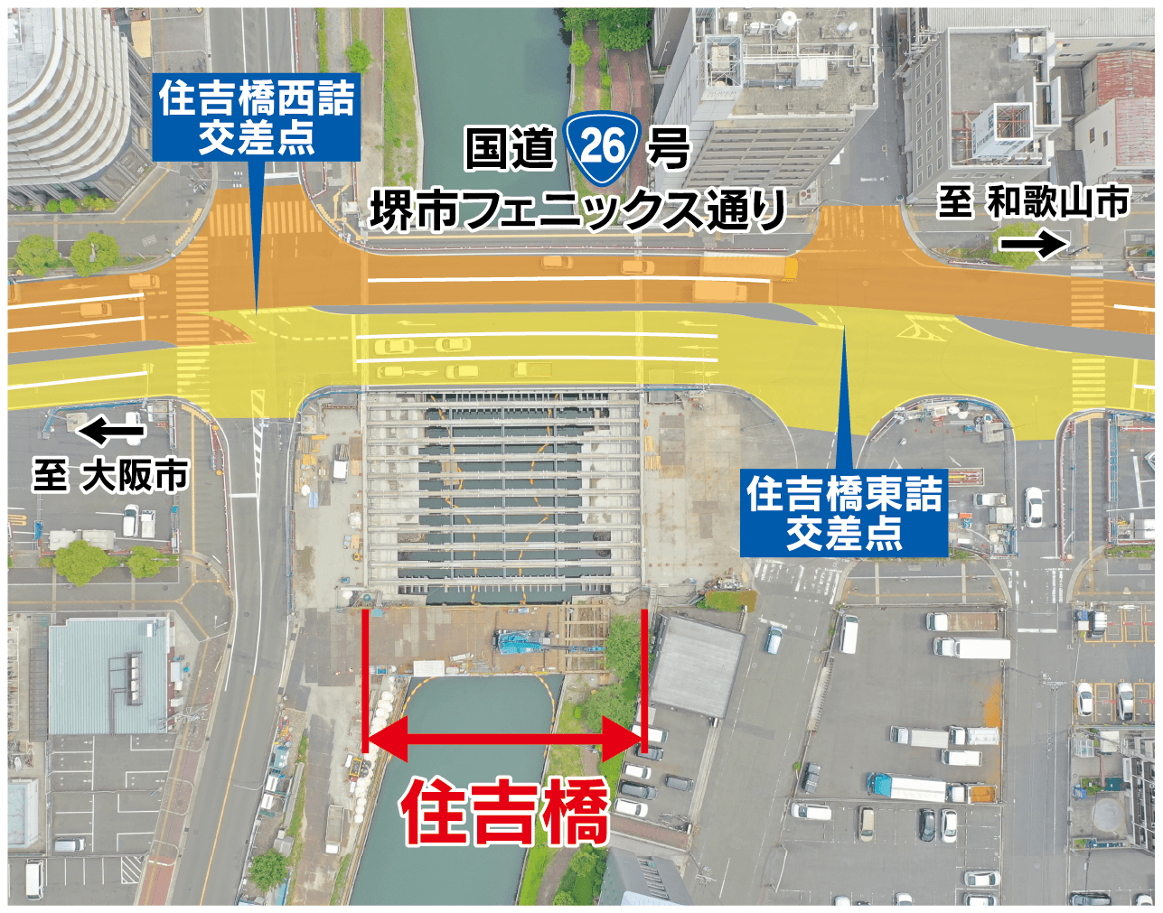 大阪国道事務所では、日本の道100選にも選定されており、堺市のシンボルロードである国道26号『フェニックス通り』において、住吉橋架替工事を進めてまいりましたが、令和7年3月17日(月)に完成しましたのでお知らせします。
