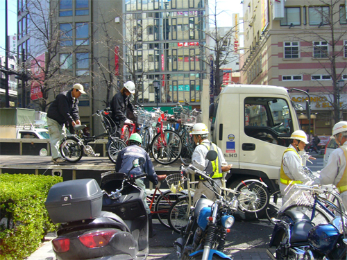 大阪国道事務所では、放置自転車対策を効果的に行うため、所轄警察署、大阪市また地元住民等と連携した取締に取り組んでいます。