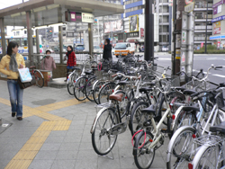 点字ブロックやエレベーターからの車いすの動線上にも無秩序に放置されている。