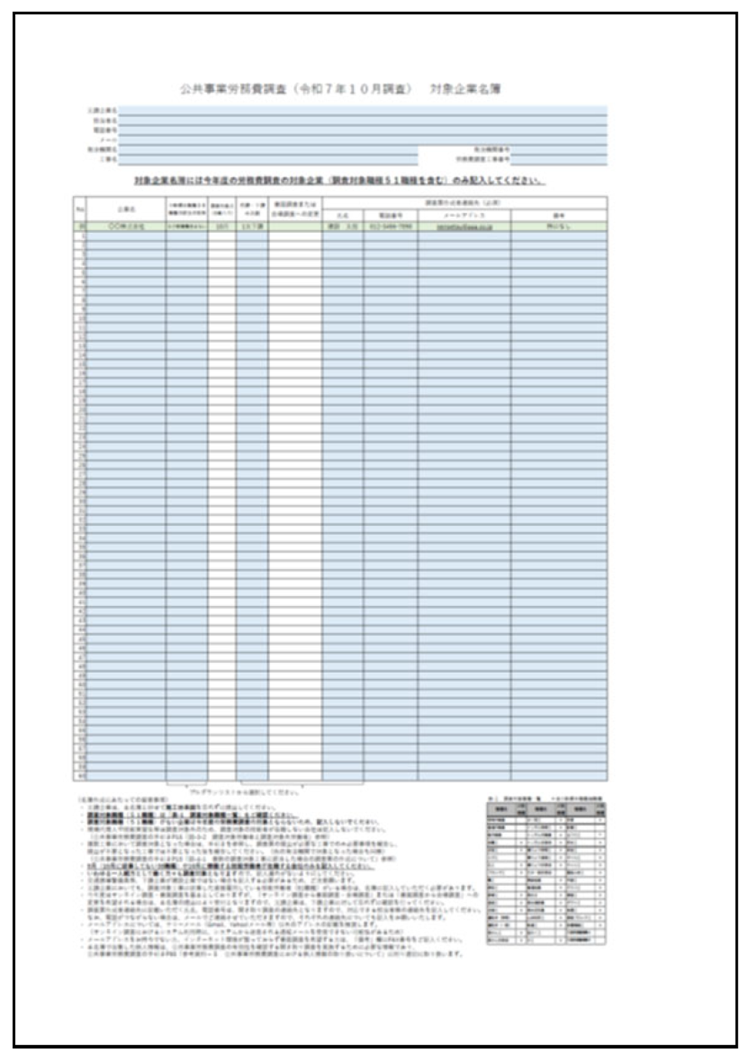 対象企業名簿および施工体系図の提出をお願いします。対象企業名簿とは当該調査の対象となる企業をリストアップした資料です。