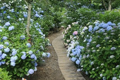 3,000株の花が咲き乱れる北播磨最大級のあじさい園で、品種は日本あじさいが中心。