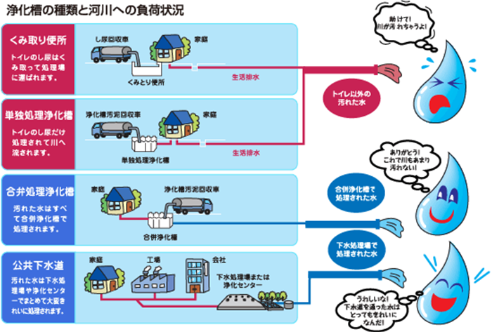 浄化槽とは水洗トイレ汚水(し尿)と、台所や風呂、洗濯などの生活雑排水を微生物の働きにより浄化処理する装置のことです。
