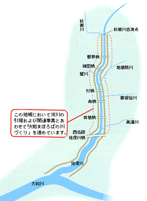また、河川の安全性を高めるとともに、将来に向けより親しみやすい水辺空間をつくるために「歴史の水辺の空間」や「うるおいとやすらぎの水辺」などをテーマとした「大和まほろばの川づくり」計画を推進しています。