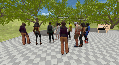 インターネット上の3D(⽴体)で表現された仮想空間内で、アバターを介して⼈々が交流できること。 その空間をワールドと⾔います。