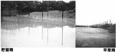 新たな開発地域では防災調整池というのを設置して雨水を貯めているんだ。
