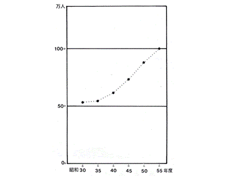 すなわち、昭和30年約55万人、昭和35年約56万人と横ばいだった流域内人口は、その後昭和40年約62万人、昭和45年約74万人、昭和50年約88万人、昭和55年約100万人と増加の一途をたどっている。