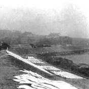 柏原南口より【昭和29年】 【年代:昭和29年 提供者:高島 富士夫氏】 ご提供者からのコメント: 当時の堤防上での晒し干しや川の 流れの中でのノリ落としは河内の風 物詩でしたが、今は機械化されこの ような風景は見られなくなりました。 関連リンク : 大和川の懐かしい写真展示館