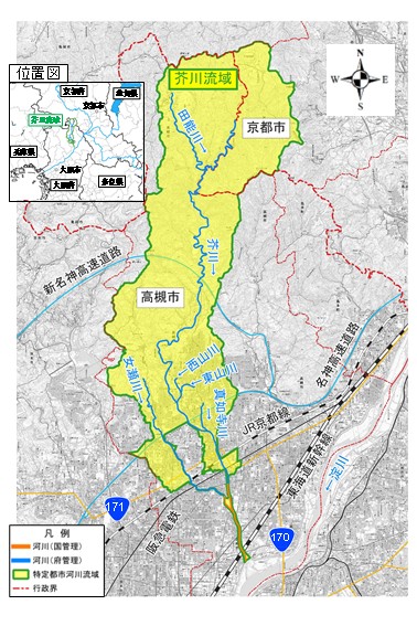 流域治水の本格的な実践に向けて、国土交通大臣は、令和3年11月に全面施行された流域治水関連法の中核をなす特定都市河川浸水被害対策法(以下「法」という。)の第3条第1項等の規定に基づき、令和7年6月20日に、一級河川淀川水系芥川等の計6河川(大阪府・京都府)について、特定都市河川として指定を行いました。