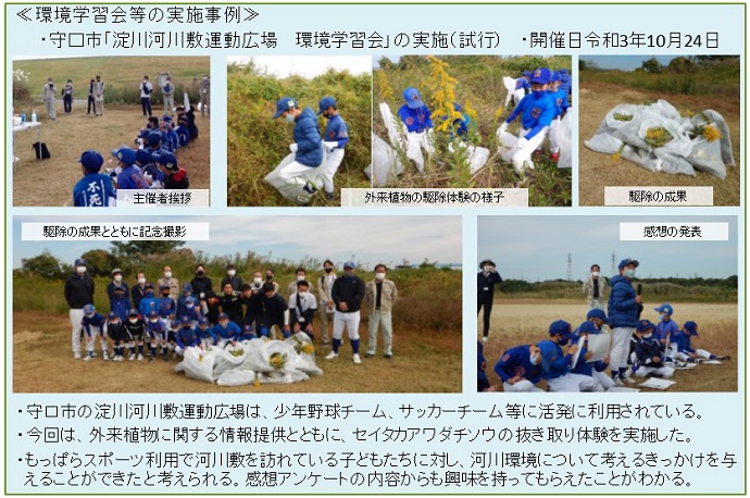 「守口市淀川河川敷運動広場」において、環境学習会を令和4年9月10日(土)に実施しました。