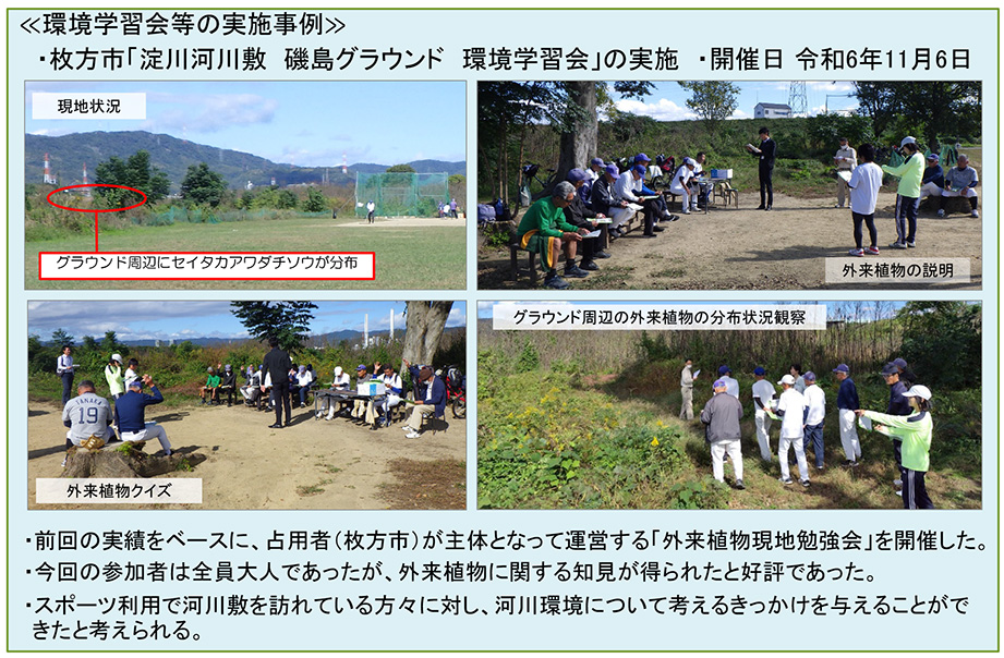 「枚方市 淀川河川敷 磯島グラウンド」において、環境学習会を令和6年11月6日(水)に実施しました。