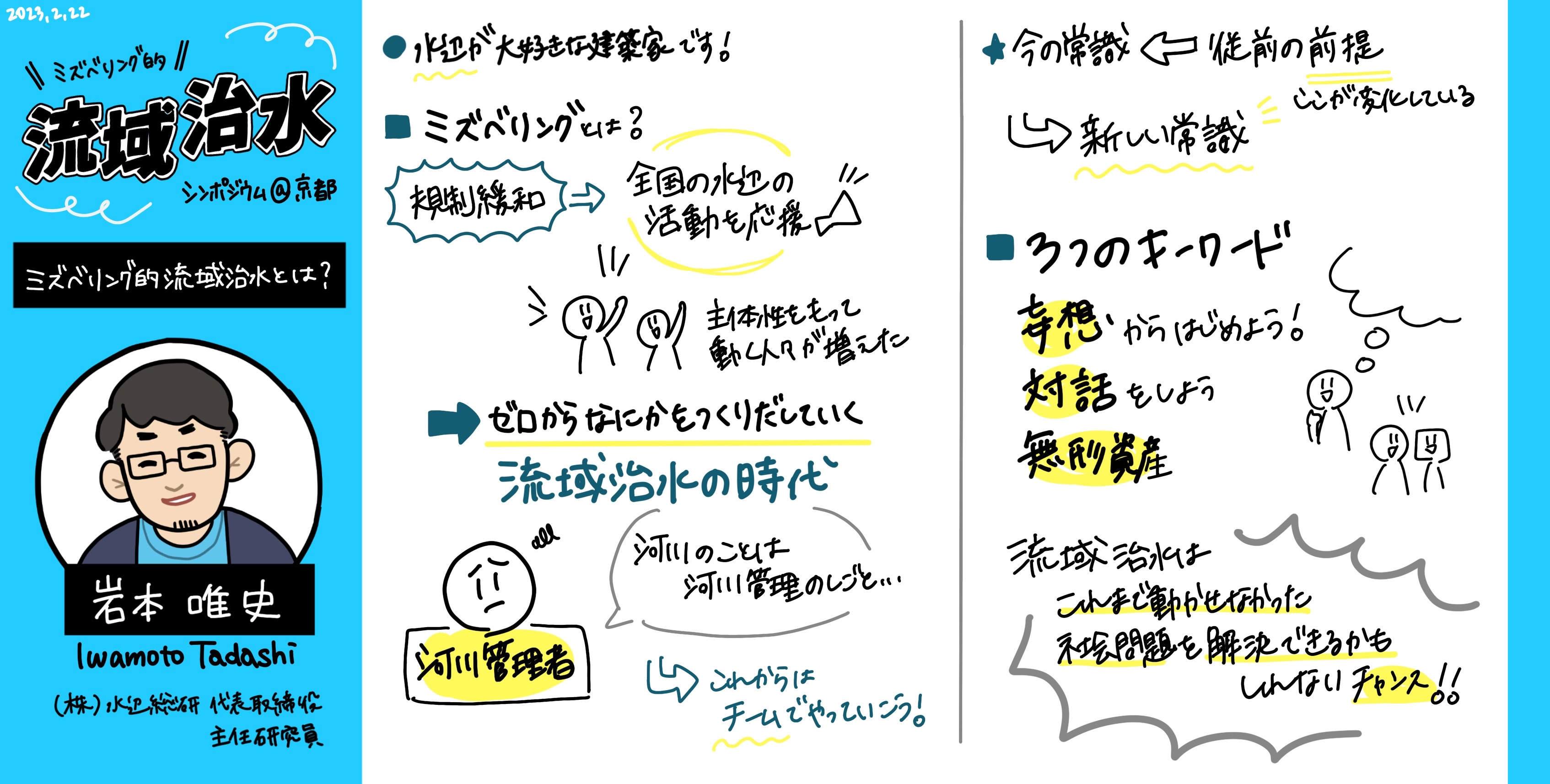 キーワード:ミズベリング、流域治水、小さな自然再生、川づくりとまちづくりを一体に、グリーンインフラ、環境防災、暮らしを守る、自分ができること