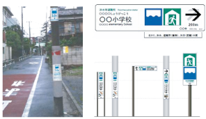 自らが生活する地域の洪水の危険性を実感した上で、避難 所等の認知度の向上を図ることを目的とし、“まち”の中に情報看板の設置を推進しています