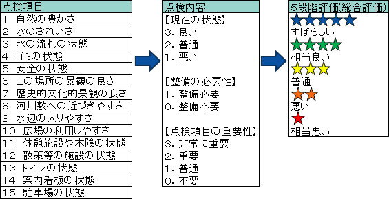 これは、住民や市民団体等と河川管理者が現地において共同して河川空間の現状を評価するものです。