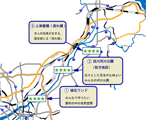 みなさんに通信簿をつけていただき、河川等の利用の快適性や環境状況を現地で評価し、通信簿を参考にして、よりよい河川空間の整備、管理を図っていきます。