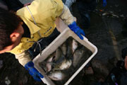 また、魚類の採取にあわせてウォーターレタスの除去、ブルーギルやブラックバスなどの外来魚の駆除を行いました。