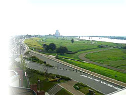淀川の流量を調節する大堰の操作室です。建物の角を緩やかにカーブさせ、柔らかな雰囲気をつくりだしています。