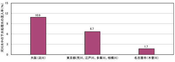 ※1; 河川水中の下水処理水の混入率は、取水の代表地点において、上流の下水処理量を計上し、それを河川流量で割った値です。