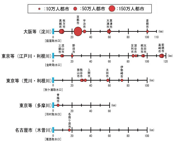 大都市の主要取水地点と上流都市の関係