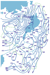 1953台風13号に伴う淀川流域降雨分布図(年(昭和28年)総雨量)